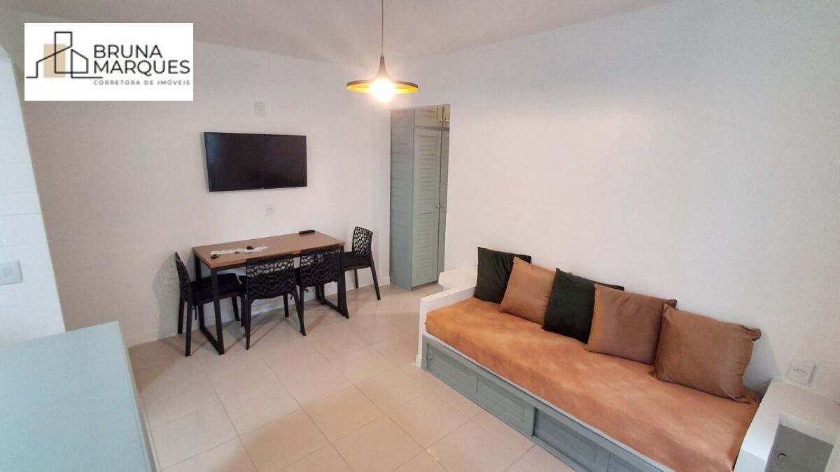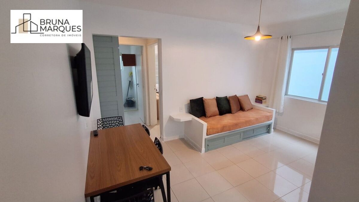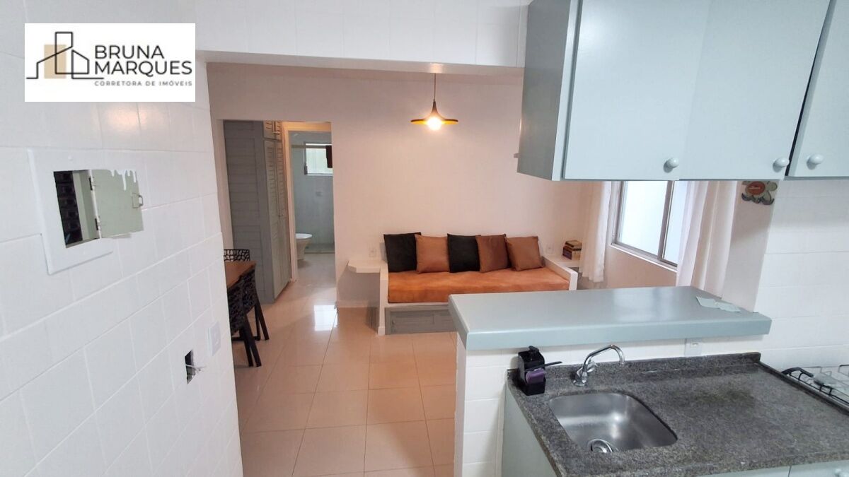 Com 1 dormitório, banheiro, sala de estar, cozinha, sacada fechada, apartamento de frente para a rua, churrasqueira, área de erviço integrada com cozinha, área privativa de 46m², SEM VAGA DE GARAGEM.