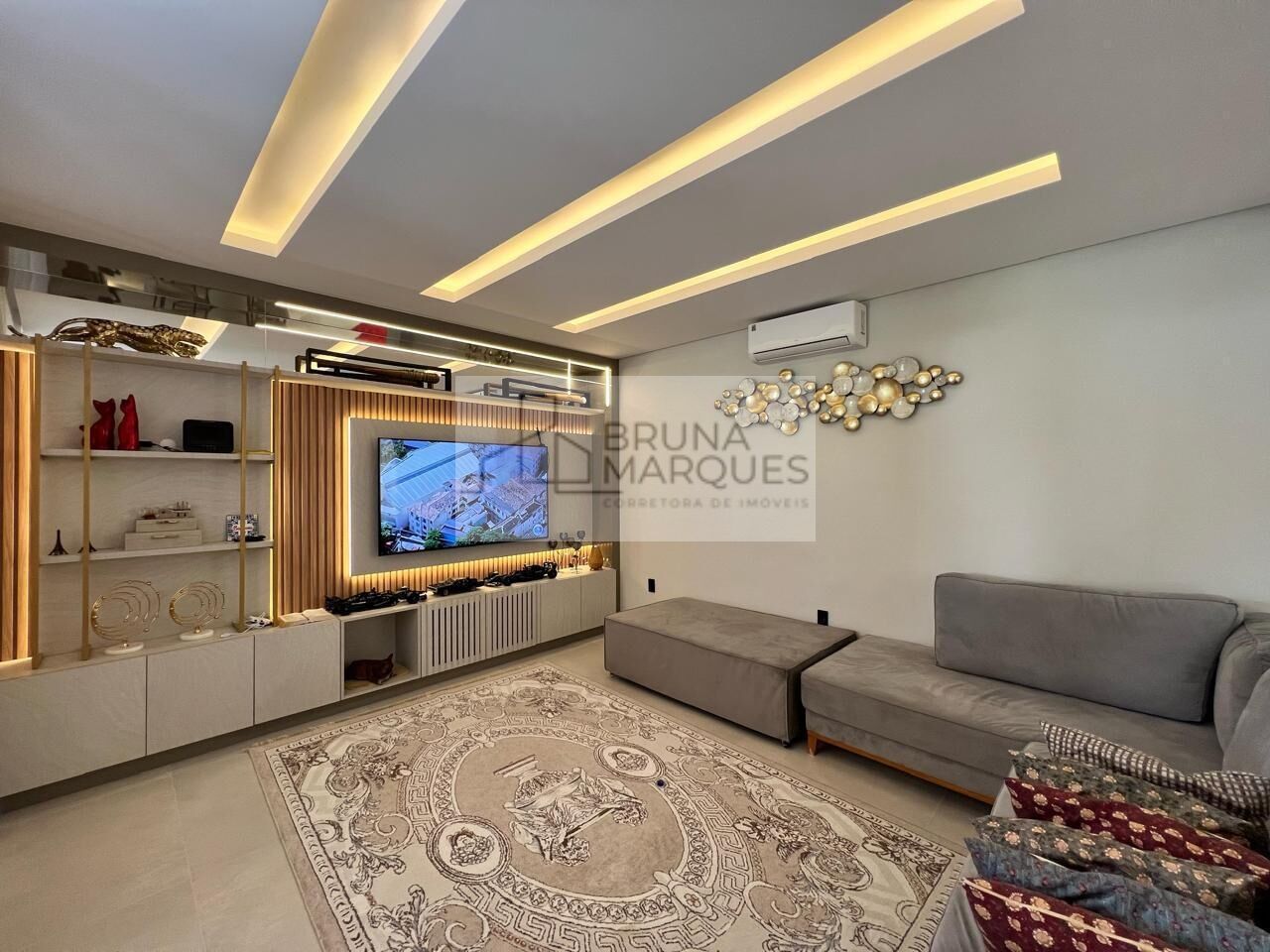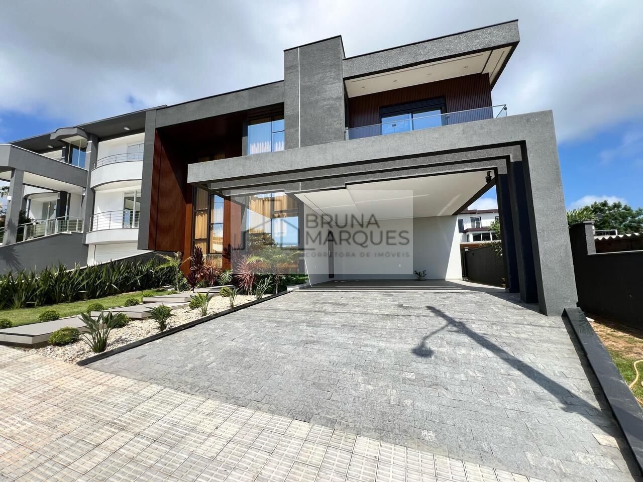 São 273,42m² de área construída, garagem coberta para 2 carros e mais 2 vagas descobertas na rampa, sala de estar, jantar, sala de tv, cozinha gourmet com ilha e churrasqueira, lavabo, lavanderia completa, 3 suítes sendo 1 suíte com closet, terreno de 488,70m², pátio nos fundos 15x9 de área livre, ampla área coberta nos fundos da casa, todas aberturas em alumínio preto, vidros duplo (champanhe), sistema de automação em toda parte inferior + suíte master, persianas elétricas, casa totalmente mobiliada com móveis alto padrão sob medida, piso em porcelanato, portas externas e acabamentos em alumínio, portas com acesso por senhas, 4 aparelhos de ar condicionado.