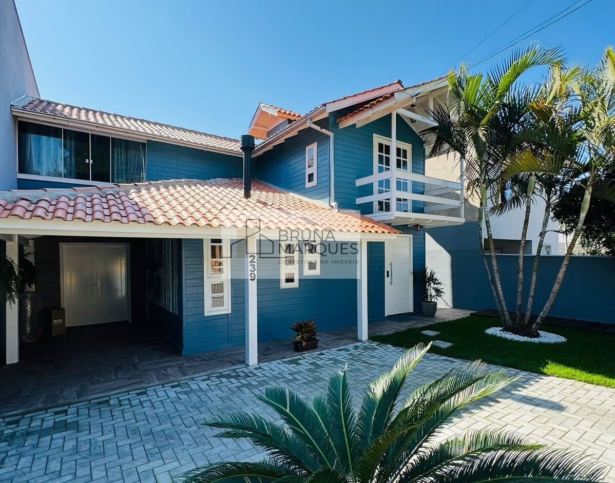 Casa com construção MISTA à venda na Praia de Ingleses em Florianópolis, 3 dormitórios, sendo 1 suíte com closet e sacada, banheiro social, lavabo, área construída de 130m², semimobiliada, cozinha toda planejada, terreno com 280m², 3 vagas de garagem coberta e descoberta, terreno todo murado, lareira, edícula com espaço gourmet maravilhoso, churrasqueira à carvão, piscina com deck, porta principal com fechadura eletrônica, madeiramento todo em Angelim ferro, portão eletrônico.