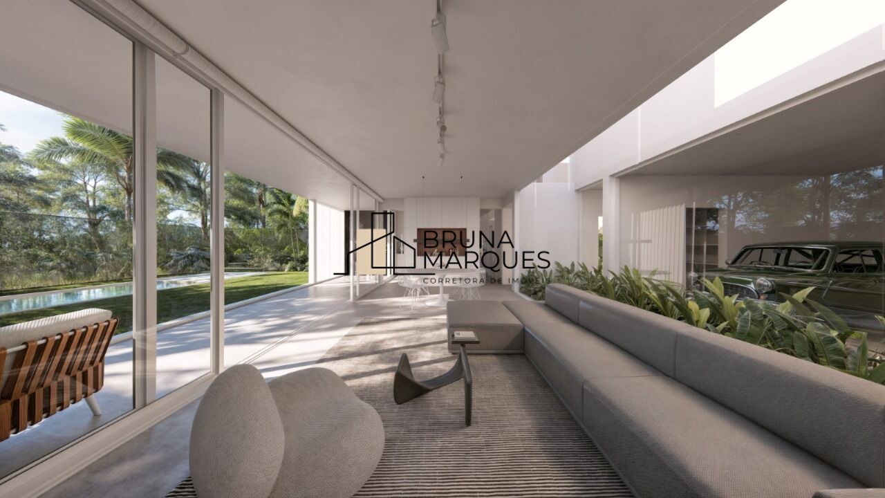 Amplas salas de estar e jantar com saída para área externa, rodeadas por grandes janelas que oferecem muita luz natural e uma vista linda para o jardim de inverno e o quintal, cozinha separada com saída para área da churrasqueira, área de serviço, lavabo, depósito, 4 suítes, sendo a suíte master com área para closet, banheiro com ante-banheiro com duas cubas, 1 suíte possui terraço privativo de 9m². A casa foi projetada para ter todas as suítes com ótima posição solar (norte/leste), e como a casa vizinha é térrea, a vista é aberta e a iluminação natural ainda mais presente, claraboias estrategicamente posicionadas na escada e nos banheiros complementam a iluminação e deixam os ambientes mais acolhedores, garagem para 6 carros (2 cobertas e 4 descobertas), e portão basculante com motor duplo, jardim com piscina.